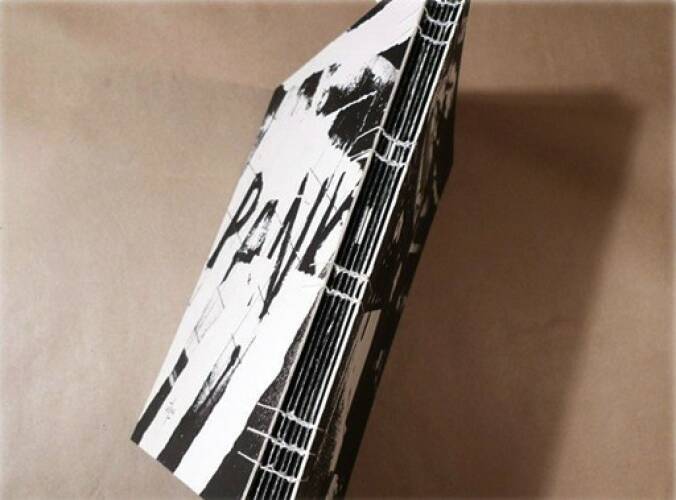 Comments: 180×250 mm, Paper: Fedrigoni Arcoprint, Screenprinted cover on 1400 micron board, 250×185 mm, COPTIC binding, collectors edition of 50