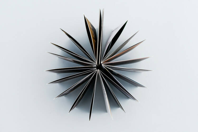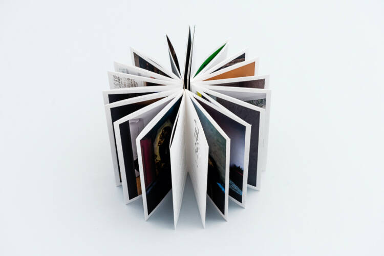 Comments: Leporello, handmade, 645cm folded to 38 pages, hardbound, black cardboard cover with silver-metallic hot foil stamping, 26×16.6 cm (open: 26 x 645 cm), printed on Munken uncoated paper. Limited to 500 hand numbered copies. English text.
