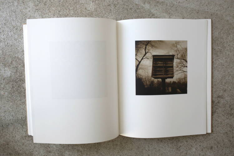Birdhouses opens with an illuminating essay by the photographer about this body of work, and all text throughout the book is painstakingly letterpress-printed by hand. The images are Indigo print reproductions of McDonald's hand-printed and hand-toned photographs, and each book includes an actual gelatin silver darkroom print ('Nestled') presented in a clear vellum envelope adhered to the inside back cover. Inside paper is Mohawk's luxurious Superfine 100lb eggshell, and the entire 60-page book is hand-sewn with linen thread.