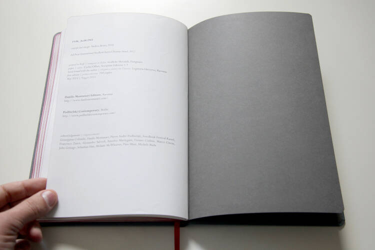 Comments: 250 numbered and signed copies, 18×27 cm, hand-bound with the author, clothbound hardcover with elastic