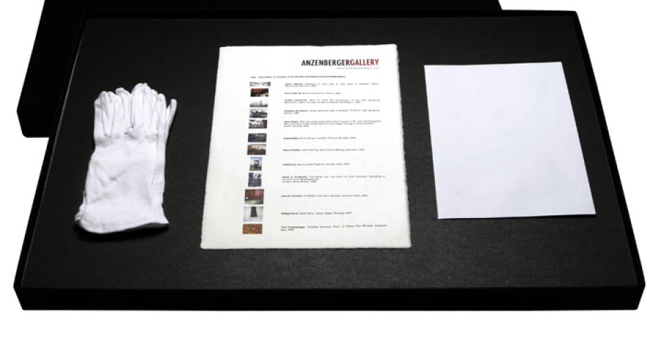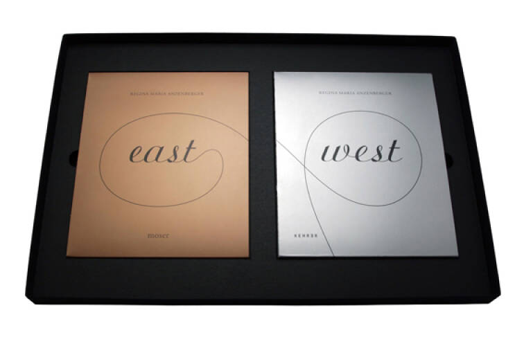 A portfolio on occasion of the 20th anniversary of AnzenbergerAgency including the signed volumes EAST and WEST and 12 fine art prints in the format 60 x 40 cm in a black linen box. The book EAST shows 17 photographic esssays by 17 photographers from the Eastern European countries, Russia, Turkey and China. The book WEST includes 15 photographic essays about the Western Idea and the globalized world of the West.