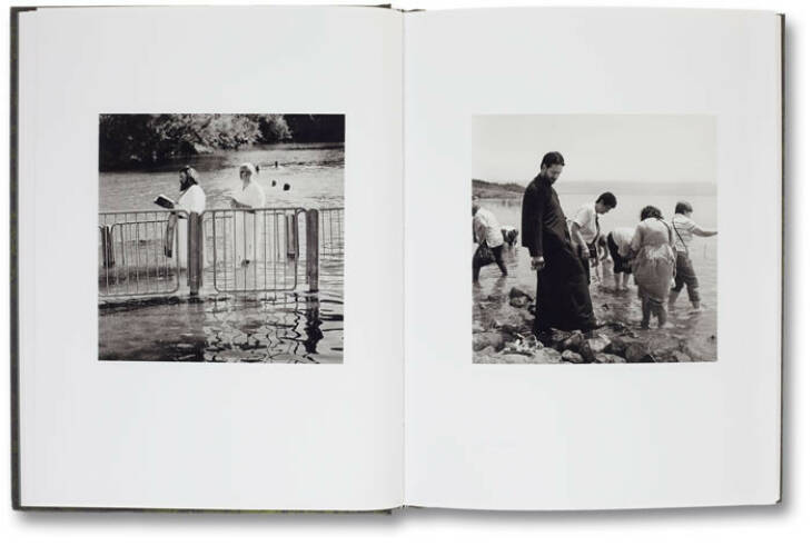 Rosalind Fox Solomon spent five months in Israel and the West Bank during 2010–11, working in Jerusalem, Tel Aviv, Nahariya, Bethlehem and Jenin. Travelling by local bus along with commuter workers, she photographed Jewish teenagers at Purim, Christians at the Church of the Holy Sepulchre, and Ghanaian pilgrims at the Mount of Olives. The photographs contain numerous interwoven narratives, some with particular political charge, such as the casket of Juliano Mer-Khamis, a Palestinian activist of dual descent who established the Freedom Theatre, assassinated during Solomon's visit to the territory.