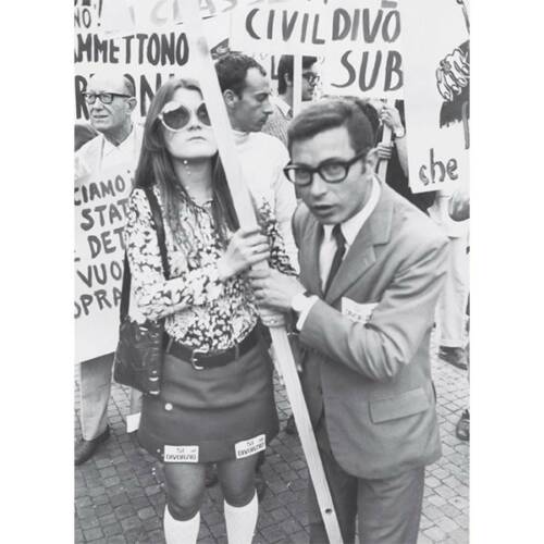 The press photographs collated for Amore e Piombo from the archives of Rome-based agency Team Editorial Services reflect the manifold aspects of the period, as the photographers oscillate between pursuing film stars at play and capturing the violence on the streets against a backdrop of industrial unrest and a sexual revolution embracing free love, divorce, abortion, feminism and gay rights.