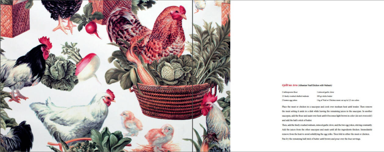 The book consist of two parts. Thе main body includes text by Christian Caujolle and pictures from the series. The second part consist of 10 pictures of different plastic tablecloths and 10 recipes. There is one tablecloth and one recipe for each country represented.