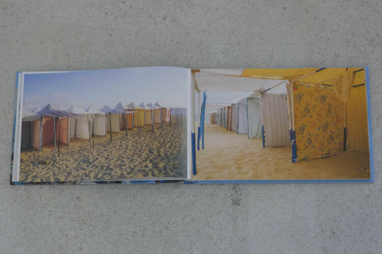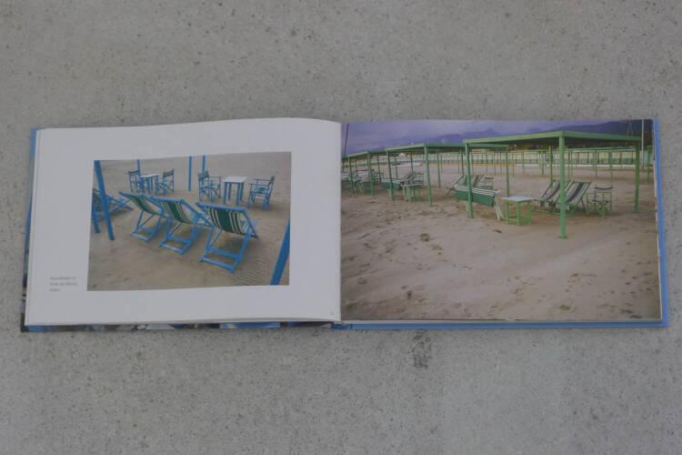 The book is a photographic exploration of the European coastline: A personal and impressionist look at the way people decorate beaches from Rimini to Biarritz, from Brighton to Jalta for the time when the climate permits swimming and sunbathing. The pictures have been taken while strolling along European shores and focus on the architecture of endless public beaches on the Adriatic, the individual wild patterns of colourful beach-huts and tents on the Atlantic coast, wind-breaks and wicker chairs on the windy coasts of the North Sea, piers and platforms stretching out from the beaches at the Black Sea and promenades hewn into rough cliffs of the Mediterranean to provide access to the sea and the sun. On the horizon waits a wide variety of temporary furniture and beach goods that are part of life at the beach. As in the photographic work of Trude Lukacsek in general she does not concentrate on people themselves but on the traces they leave on the face of cities and landscapes. She tries to store these marks and thus rescues them from the waves of constant change for the benefit of the viewer. She is not interested in monuments but in every-day building designs, constructed with the creative energy, the imagination and the disposition of its producers. And it seems that the proximity of the sea stimulates people to an unconstrained and joyful way of handling colour and shape. Photographs were taken in Italy, Portugal, France, Great Britain, Belgium, Netherlands, Germany, Poland, Latvia, Russia, Ukraine, Greece and Croatia.
