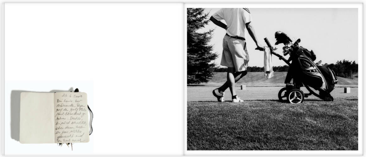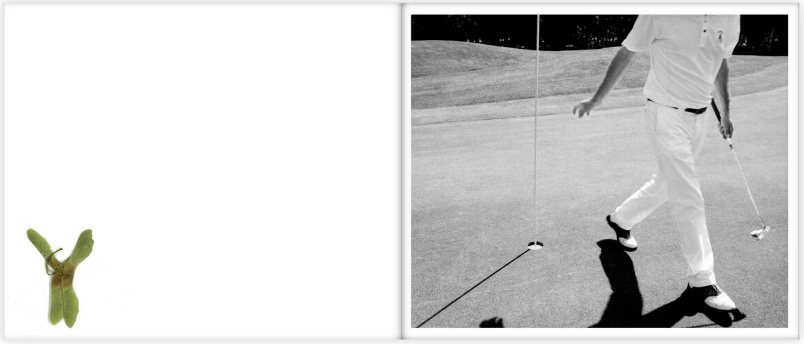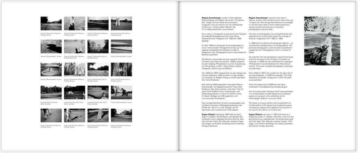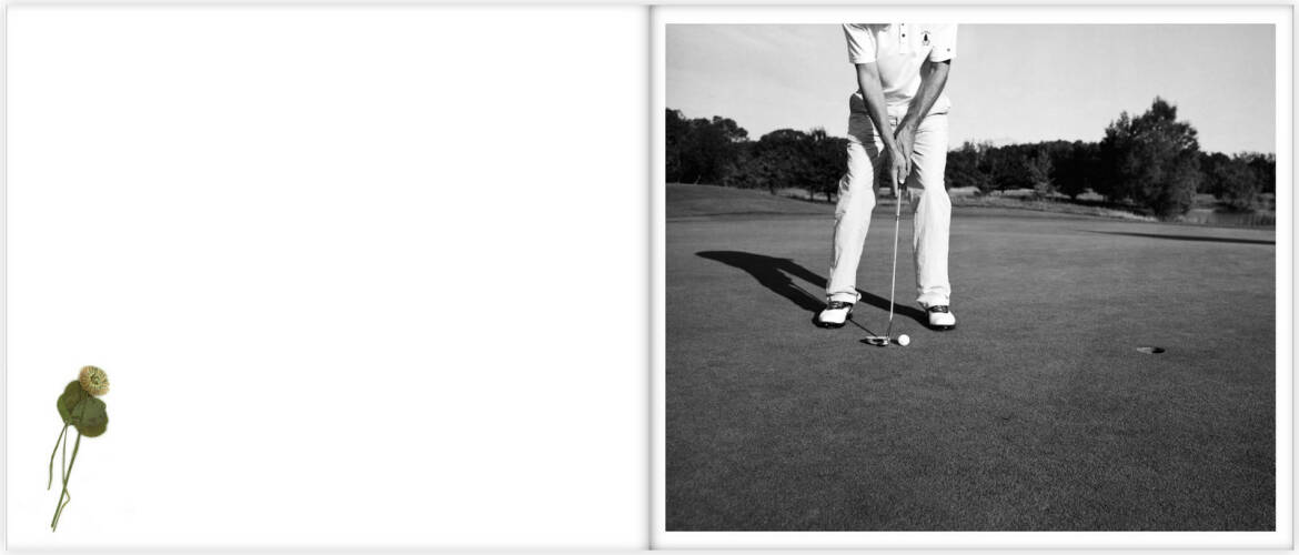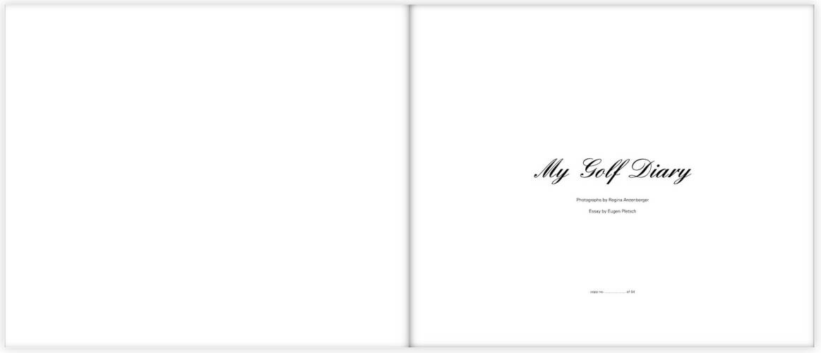 De luxe book plus print edition of 54 signed and numbered copies including a fine art silver gelatin print in a white box and a real flower in the beginning of the book which makes each book unique. The print can be chosen from 10 different motifs. The book includes a text essay by the reknown German golf book author Eugen Pletsch."My very first golf lessons were led by an American golf pro called Will. During our lessons Will would suggest to us that we look around us and let the nature surroundings soak in as part of the golf experience. He also suggested that we carry a small notebook in our golfbag where we could write down specific experiences we had as we played. As an artist that really appreciates nature, I welcomed this suggestion and immediately started such a notebook. In addition to writing a few lines in the book, I also began to collect flowers, feathers, leaves, etc. ...whetever I could find laying around the course to help illustrate what my personal experience was like at the time.In preparing this book I wanted to make it somewhat special, capturing my own vision of what golf means to me and I came across this notebook with my personal experiences and all the small treasures I have collected during my two years of golfing..."Regina Anzenberger, January 2011