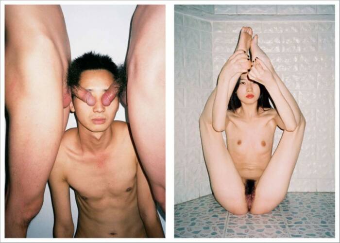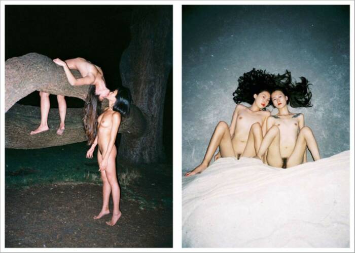 野生 is a large format collection of unbound posters (book size: posters folded to 28 x 40 cm, open size 56 x 40 cm) printed on strong paper, held together by a banderole. The double pages confront vertical formats with half of horizontal formats, vertical confront vertical, or half of horizontal confront another half or horizontal formats, recontextualizing Ren Hang’s work.It is Ren Hang’s biggest and heaviest book up to now.