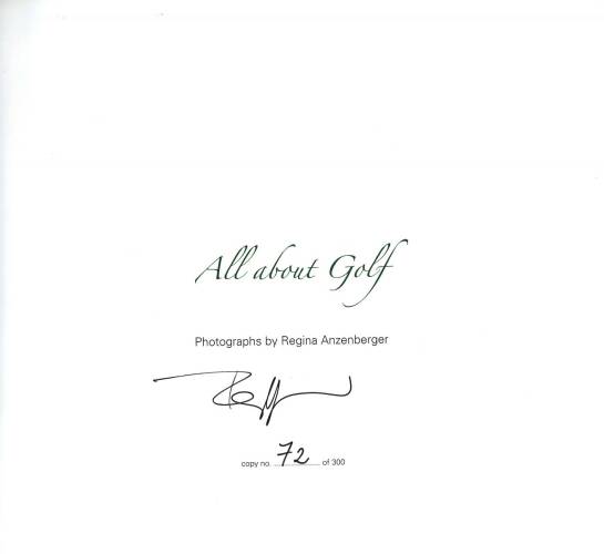 It is well known that strength lies in tranquility. Tranquility and strength are also the attributes that most accurately describe Regina Anzenberger's photography. The strength that emanates from within is based above all in the tranquility with and in which the exposures were taken.They speak - in an almost coincidental, quietly observant manner - of all the charms, perils and challenges of a round of golf. In the form of a visual journey, the viewer is taken along the stages of the fairway; from manicured scenery to an encounter with kangaroos in Australia, from the tee-off on the vastness of the fairway, to the intent pursuit of the ball's trajectory, the attempt to "read the green", putting and hope: "will the ball reach its destination?" Anzenberger's awe-inspiring impressions and narrative picture language invite you to dive into the world of golf, the timeless elegance of which is underlined by the stylistic choice of black & white photography. Edition of 300 copies, signed and numbered.