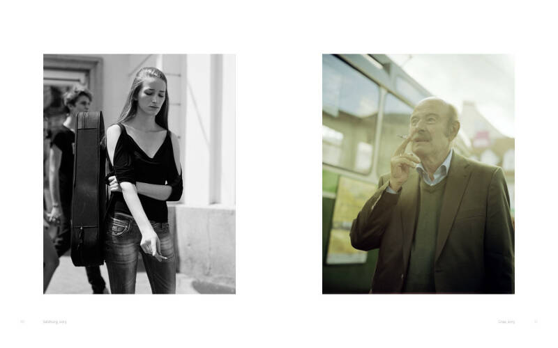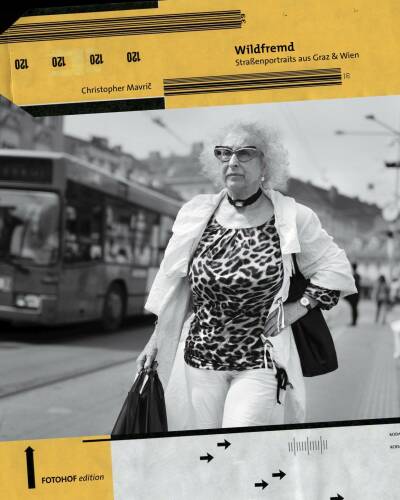 Christopher Mavric has dedicated his first book to the genre of street photography. Everything in his portraits of Austrians living in Vienna and Graz is ‘live’ and unstaged. The book features passers-by in the literal sense, contemporaries hurrying through both the picture and the city, but also dwellers and denizens in their respective district environments, waiting, lingering, or stranded on a bench, each in their own specific habitus, wholly contemporary or entirely of yesteryear – now suspended for all eternity in the photographic image featured in the book.
