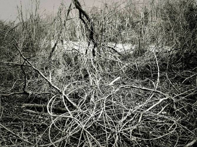 „It all started with one particular tree in the winter forest that caught my eye during one of my walks with my dog Shakeera. I kept returning there over an entire year and photographed the tree through every season. What especially fascinated me were the vines which elegantly wound themselves down to the ground from a branch, creating an image of endless bonds. With the forest as a source of inspiration and energy for all creativity, the roots and bonds became my theme." (Regina Anzenberger)