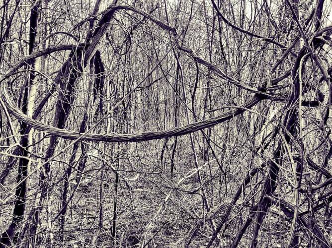 „It all started with one particular tree in the winter forest that caught my eye during one of my walks with my dog Shakeera. I kept returning there over an entire year and photographed the tree through every season. What especially fascinated me were the vines which elegantly wound themselves down to the ground from a branch, creating an image of endless bonds. With the forest as a source of inspiration and energy for all creativity, the roots and bonds became my theme." (Regina Anzenberger)