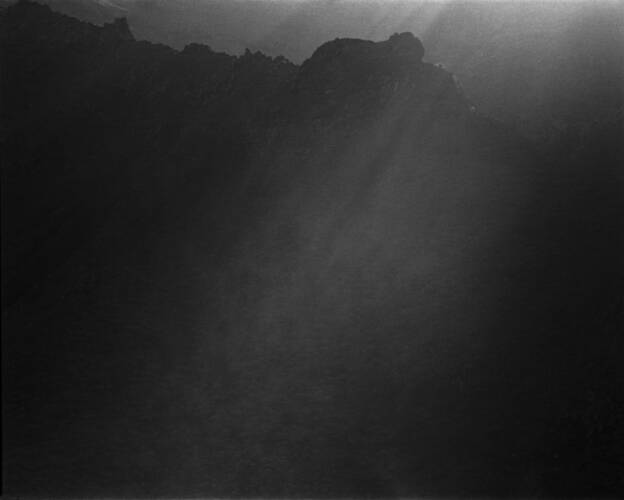 Photography exists by the virtue of light, but the landscapes in Awoiska van der Molen’s photographs loom out of the darkness. Her monochrome photographic works arise out of a desire to penetrate deeply into the core of the isolated world in which she photographs. Van der Molen is known for her monochrome landscapes. She stands out as someone who remains rooted in the riches of analogue photography and printing; expressing these roots in an extreme manner by creating monumental pieces that combine intentionality in choice of subject and photographic craftsmanship.