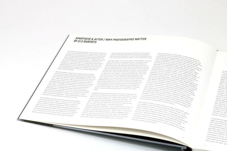 Printed to accompany an exhibition of thirteen participating photographers at Huis Marseille in Amsterdam, this catalogue explores the multi-faceted phenomenon of South African visual culture, both during apartheid and in its aftermath. Along with critical readings by Sean O’Toole and Els Barents, it presents work by David Goldblatt, Santu Mofokeng, Jo Ractliffe, Daniel Naudé, Mikhael Subotzky, Sabelo Mlangeni and others. The images reveal how powerfully the recent past can colour our perception of the present, and how being a photographer in South Africa requires a sober, articulate and skilled approach to the nation’s burden of memory, trauma and guilt.